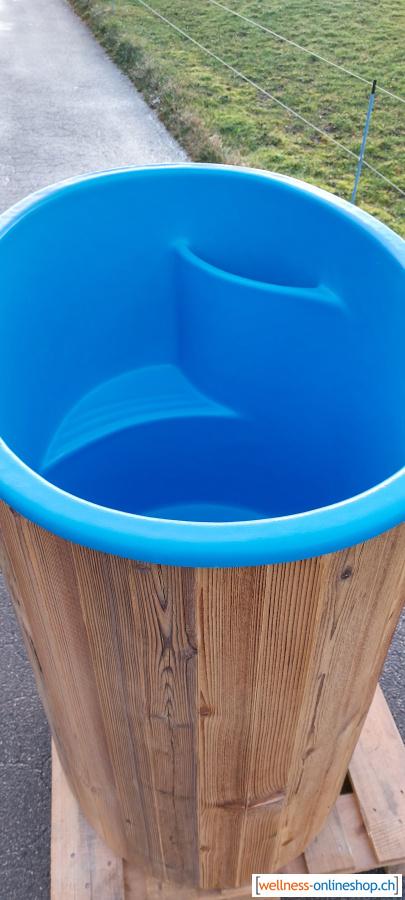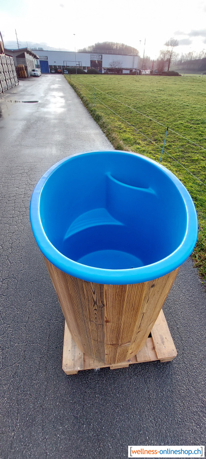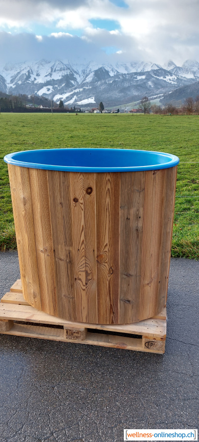 Das Tauchbecken aus Altholz mit der Kunststoffwanne wird in der Schweiz hergestellt.