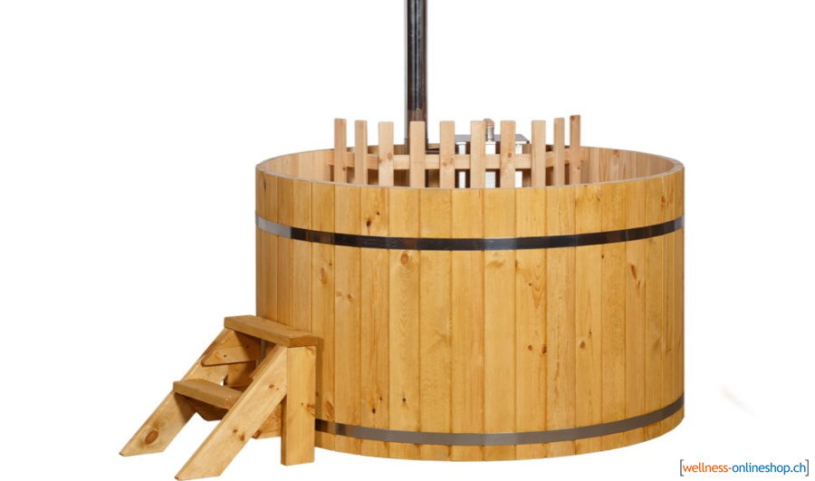 Badezuber aus nordischer Fichte / Kiefer - alternativ sibirische Lärche - mit Innenofen aus Edelstahl, sehr massive Bauweise und schöne Verarbeitung zu einem unschlagbaren Preis-/Leistungsverhältnis.