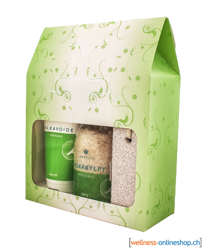 Fusspflegeset mit Erfrischendem Fussbalsam 100 ml, Bimsstein und Erfrischendem Fussbad 270 g.