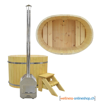 Die Treppe aus Fichte ist perfekt für den Hotpot Budget Fichte mit Innenofen, das Coldtub Fichte und den Hotpot oval Ofuro geeignet.