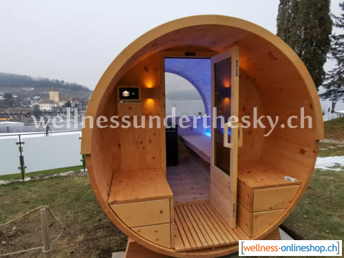Das Saunafass wird in unserer Schreinerei auf Mass angefertigt und die Ausstattung nach Ihren Wünschen und Bedürfnissen konfiguriert. Die Innenflächen sind glatt und ohne Profilkanten, sodass die Saunarundung als Gesamt-Fläche wirken kann. Die einfache Reinigung der Fläche ist ein weiterer Vorteil.