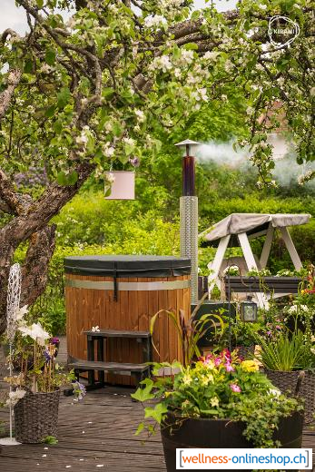 Die ideale Wassertemperatur liegt bei 36°C. Das Aufheizen dauert erfahrungsgemäß ca. zwei bis drei Stunden, abhängig von der Fassgröße der Außentemperatur und dem verwendeten Feuerholz. Um während des Badens die Wassertemperatur konstant zu halten oder zu erhöhen, sollten Sie ein kleines Feuer im Ofen erhalten. Auch wenn die Wassertemperatur absinkt heizen Sie nur langsam nach, da sonst das Wasser zu heiß werden könnte. Sie werden schnell Ihren persöhnlichen Weg finden, das Fass optimal zu beheizen.