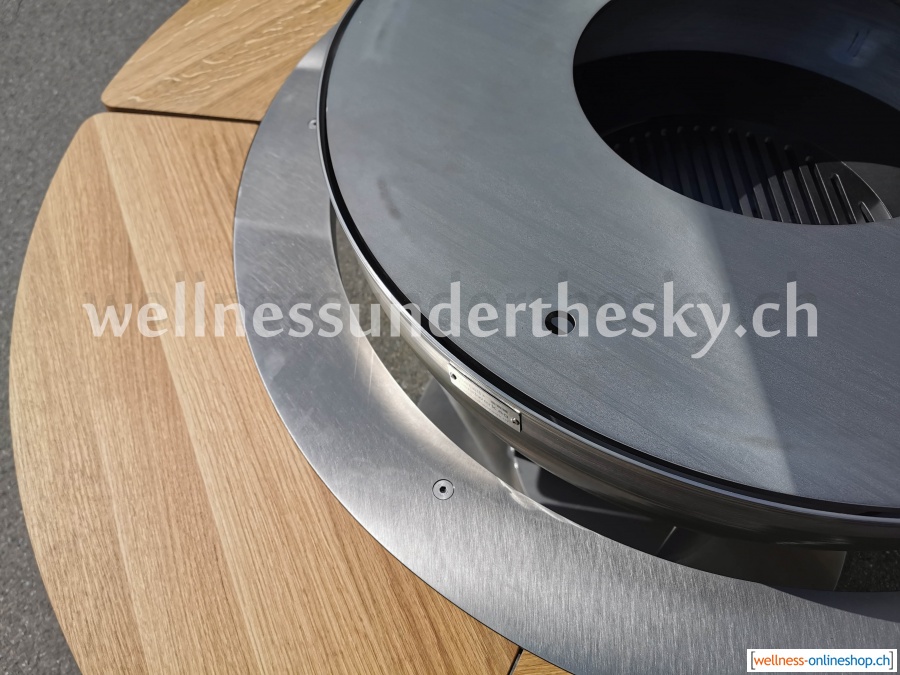 Grillschale aus Edelstahl mit Tisch aus Eiche - swissmade - Typ MANITU
