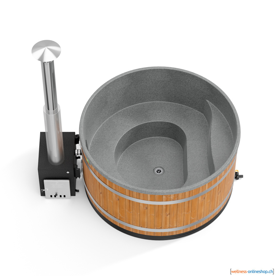 Wenig Wasserbedarf und eine kurze Aufheizzeit zeichnen diese Badefass aus.