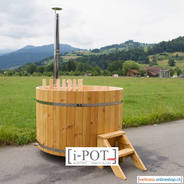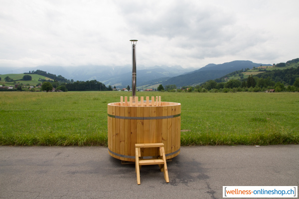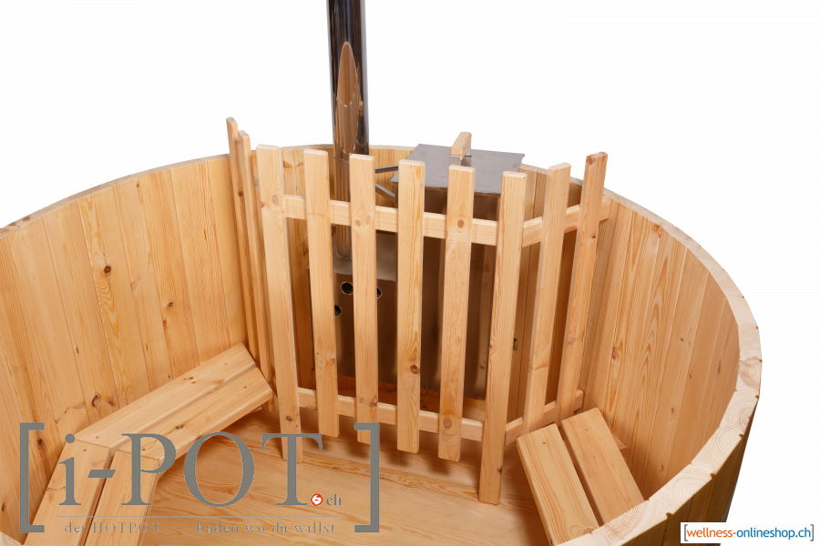 Badezuber aus nordischer Fichte oder Kiefer mit Innenofen aus Edelstahl, sehr massive Bauweise und schöne Verarbeitung zu einem unschlagbaren Preis-/Leistungsverhältnis.
