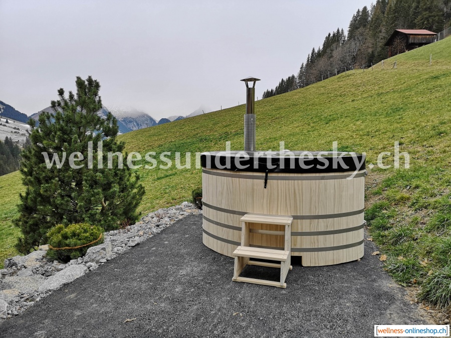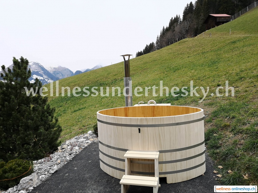 Im Innenbereich ist dieses Badefass mit einem Hygiene-Schutzanstrich versehen, der eine leichte Reinigung ermöglicht.