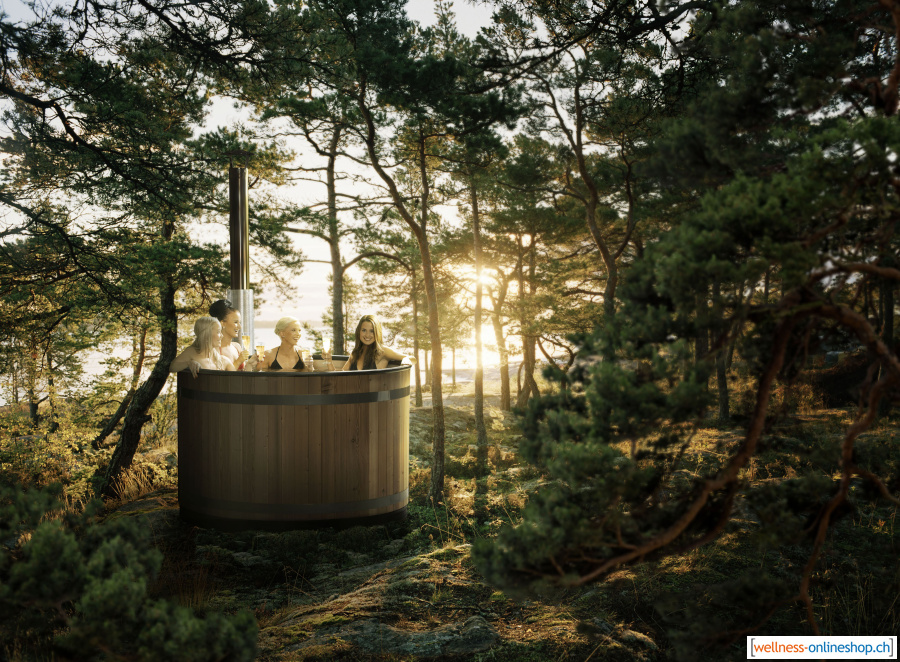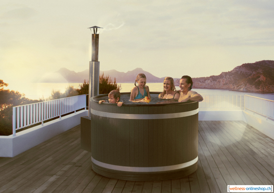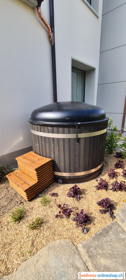 Kunststoff Hotpot mit Verkleidung aus Vintage Thermoholz