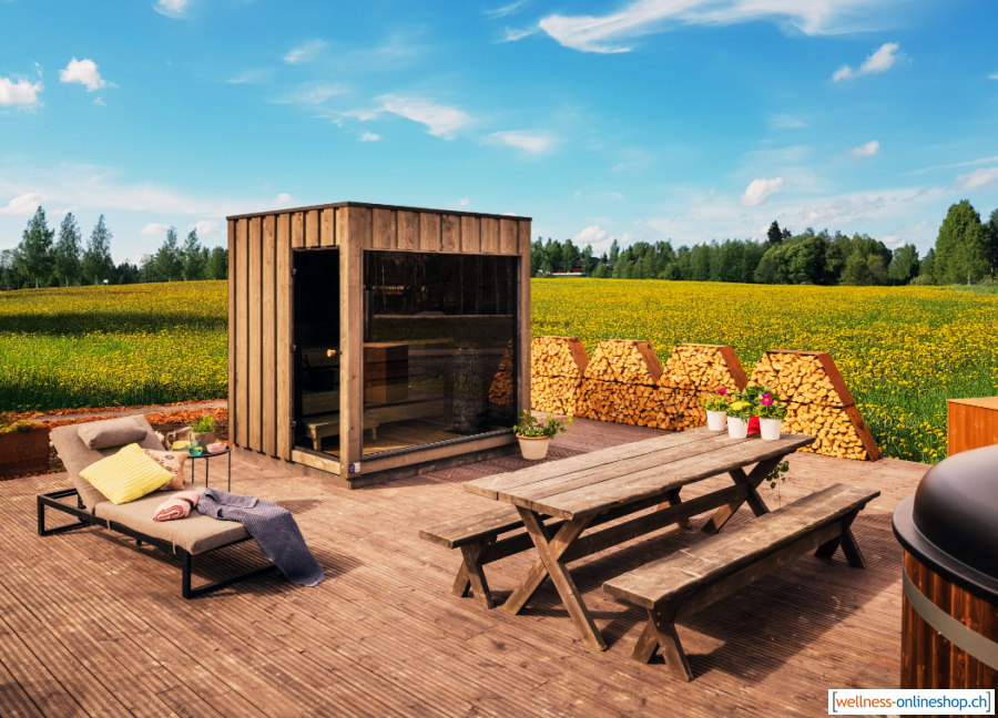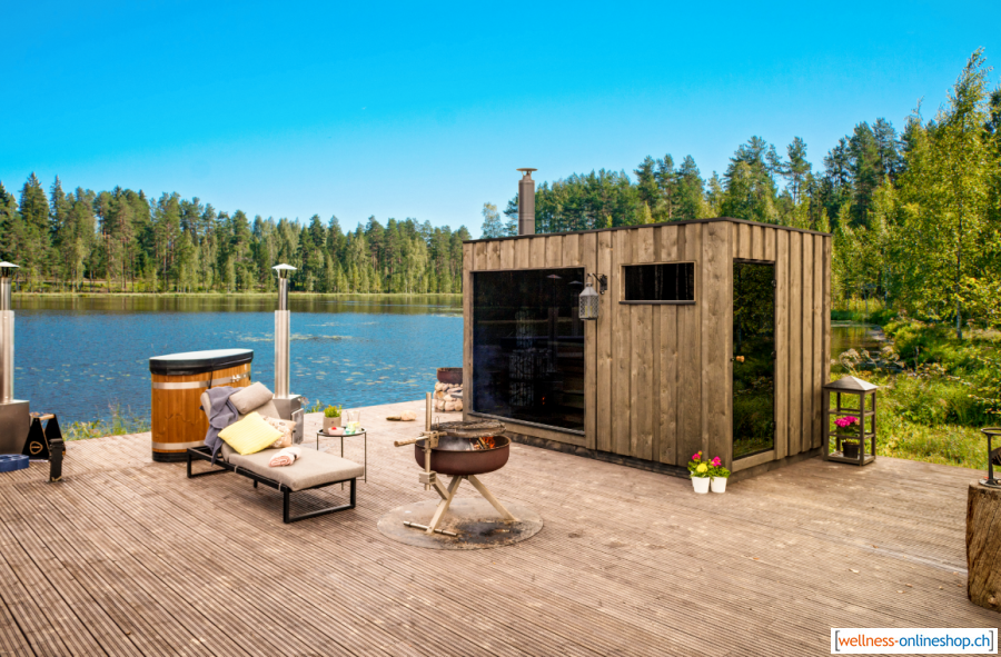 Die Kirami FinVision -sauna ist ein Musterbeispiel für das Ergebnis qualitativ hochwertiger Handwerksarbeit. Die fertig oberflächenbehandelte Sauna wird aus zugesägtem Nadelholz und Fichtenfurnierholz gefertigt. Im Inneren der Sauna herrscht eine gemütliche Atmosphäre, die jeden Entspannungssuchenden in Ihren Bann zieht. Dank der grossen Glasflächen kommt auch die Natur ganz nah an Sie heran. Wir sind uns sicher, dass selbst der unerfahrenste Saunagänger zu einem wahren Saunaenthusiasten wird, wenn er erst einmal in Saunastimmung gekommen ist. Wir glauben, dass die Sauna einer der beliebtesten Orte in Ihrem Garten werden wird.