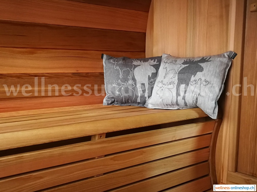 Das Saunakissen hilft zur besseren Entspannung in der Sauna. Durch das weiche Elch Sauna-Kissen wird die Nackenmuskulatur gestützt und entpannt. Sie können sich ausruhen und entpannen und den Stress des Tages vergessen.