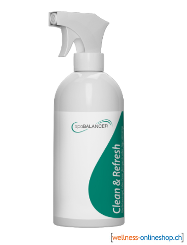 SpaBalancer Clean & Refresh wird als milder Reiniger für die Unterseite der Isolierabdeckung, der Acryloberfläche des Whirlpools, sowie für die Kissen verwendet. Schmutz und Gerüche werden hierbei entfernt. Die Neutraliseierung der entsandenen Gerüche erfolgt durch einen pflanzlichen Wirkstoff.
