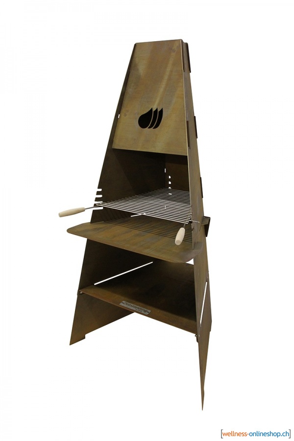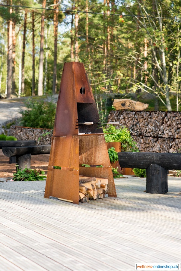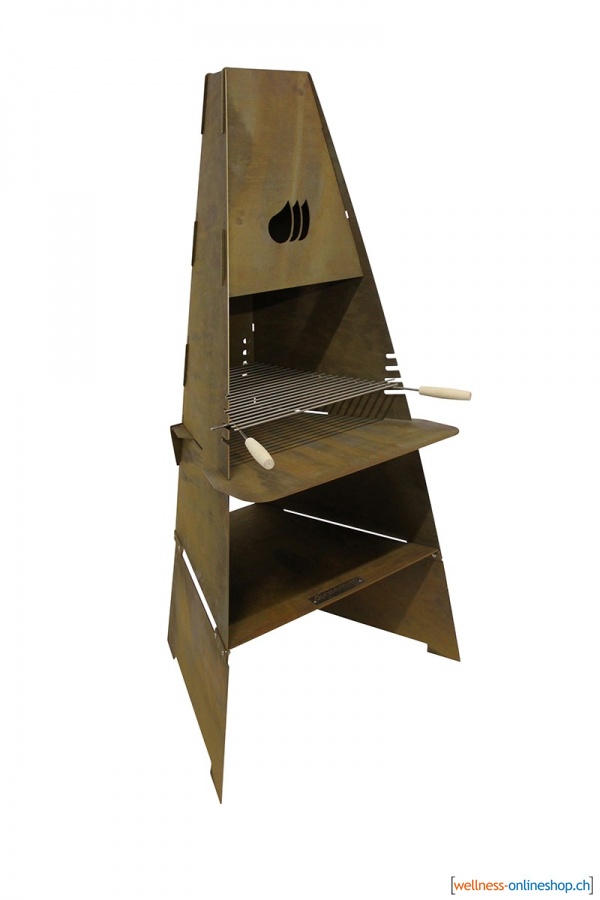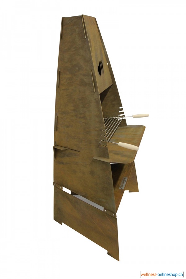 Dieser Grill ist in stilvollem Design aus 3 mm Corten-Stahl gefertigt.