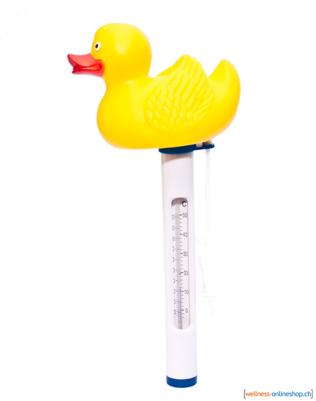 Damit das Thermometer nicht davon schwimmt, empfehlen wir, dieses an der Leiter festzubinden.