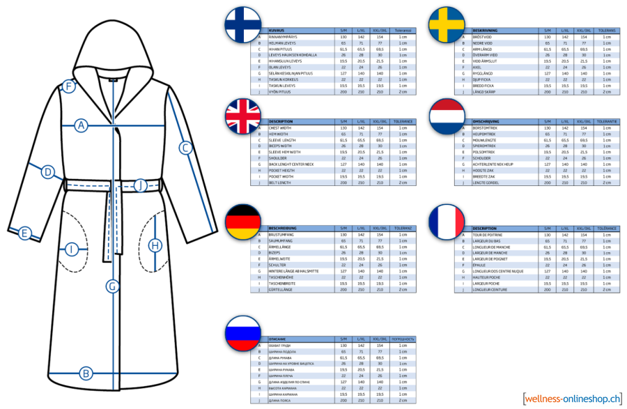 Kirami FinVision® Experience Bademäntel sind lässig, stilvoll und zeitlos. Die aus 100 % Baumwolle gefertigten Bademäntel sind atmungsaktiv und sorgen weder für Juckreiz noch für Hautirritationen. Dank ihrer hohen Qualität sind sie langlebig und besonders waschbeständig. Der Unisex-Bademantel ist sowohl für Männer als auch für Frauen geeignet. Die verfügbaren Grössen sind S/M, L/XL und XXL/3XL.