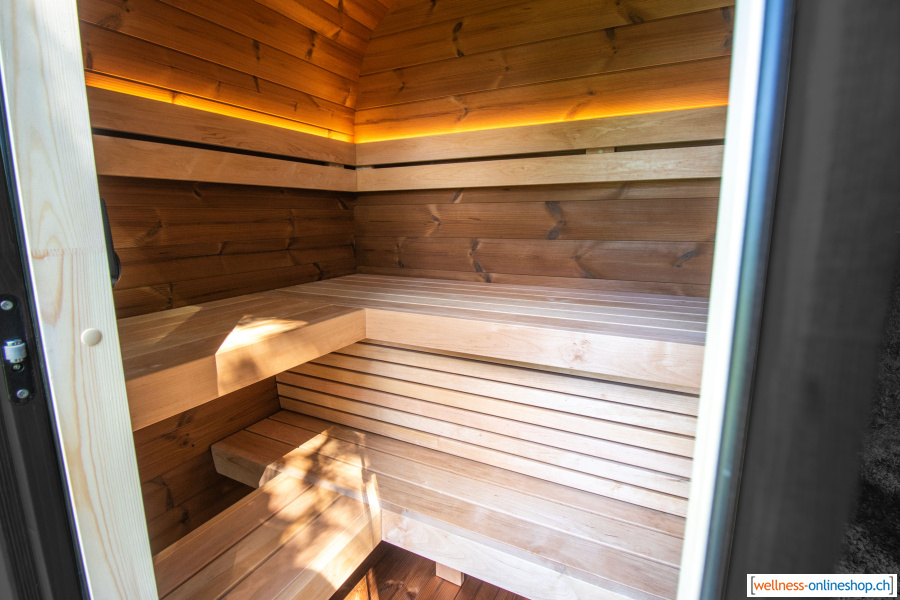 Testen Sie die optimale Grösse der Sauna beim Probesitzen, Geniessen Sie den unterschiedlichen Holz-Duft der verschiedenen Holzarten.
