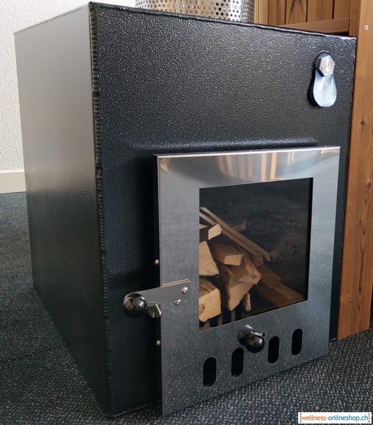 Optional erhältlich für die Badefass Öfen Cult & Macu von Kirami die Glastür mit Luftregelung. Sehen sie zu jeder Zeit wann sie Holz nachlegen müssen und genießen sie schon beim Sitzen auf der Terrasse den Anblick vom Feuer.