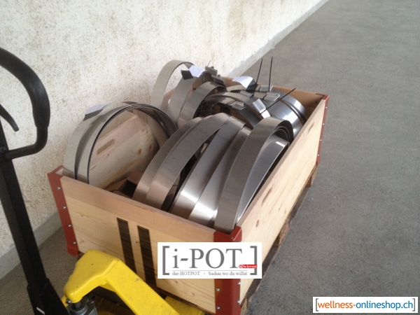 - Ofen aus Edelstahl mit vier Laschen an der Seite für Befestigung.Die Befestigung erfolgt innen im Badefass.
