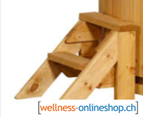 Die Treppe aus Fichte ist perfekt für den Hotpot Budget Fichte mit Innenofen, das Coldtub Fichte und den Hotpot oval Ofuro geeignet.