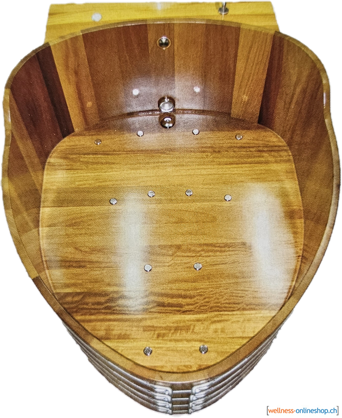 Die Indoor Whirlpool Wanne aus massivem Kambala ist ideal für 2 Personen nebeneinander liegend.