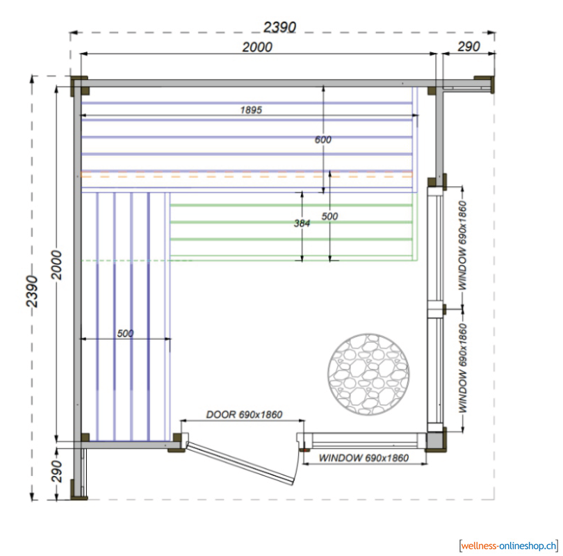 | Saunaraum | 2.0x2.0m |